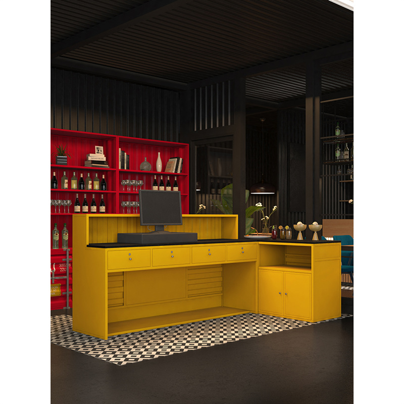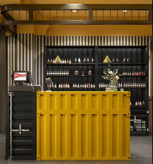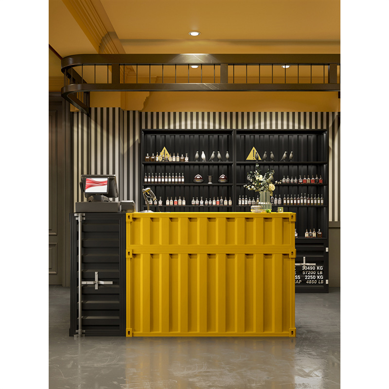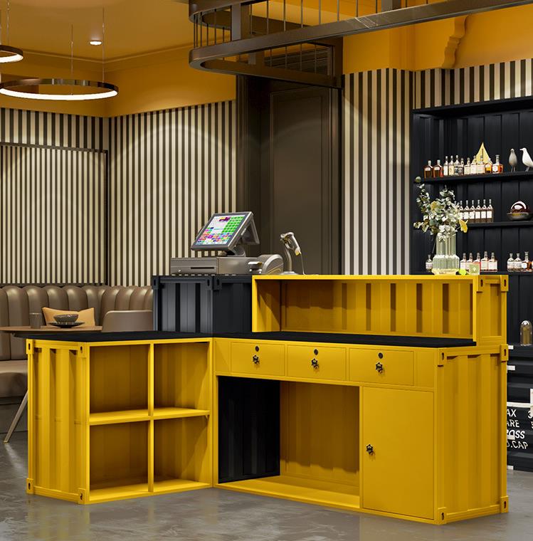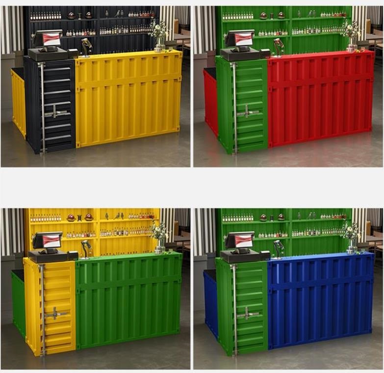Cashier Bar Counter Container cash register bar Price: $150~$1000Size: Support customizationScene: Bar, gym, grillFeatures: can be customized L0G0, Multiple storage layouts More space, High-Quality Baking Varnish,Uniform Paint Surface,Beautiful Color,Durablestyle: Industrial wind