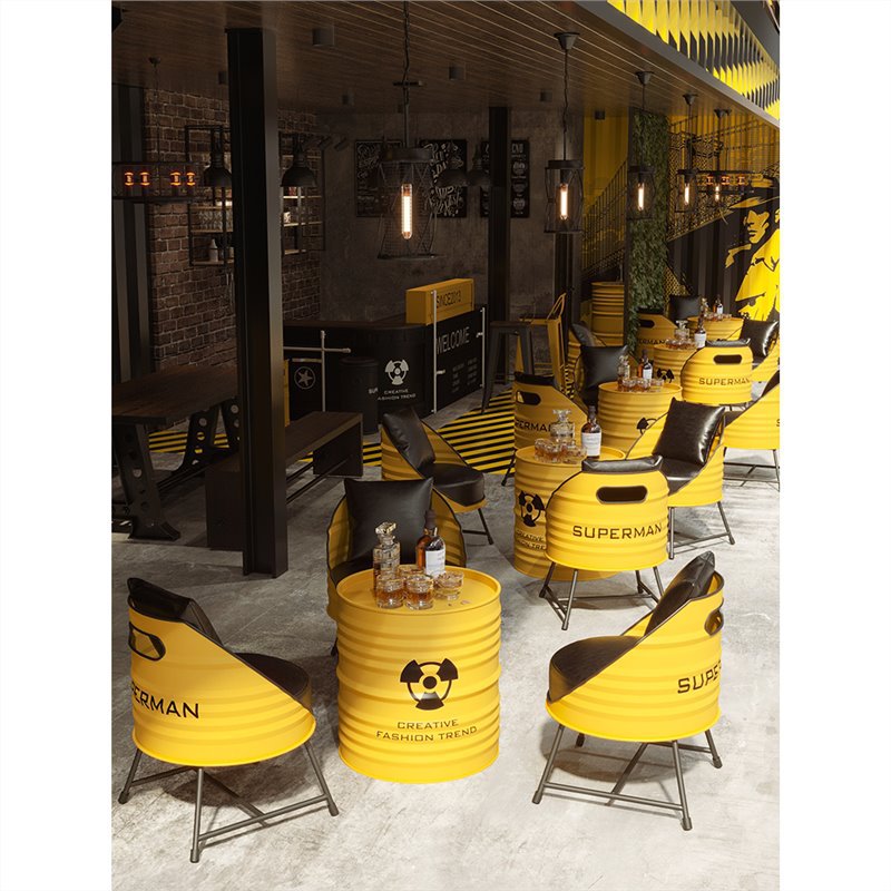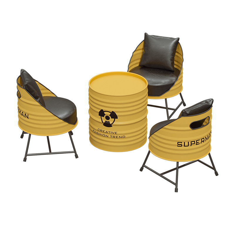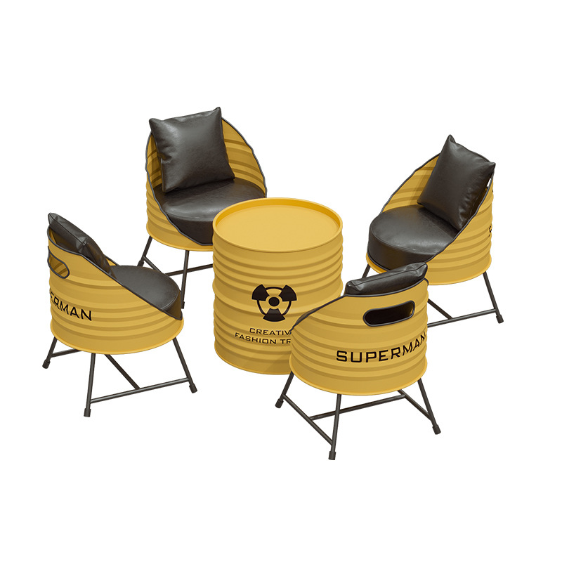 Creative oil drum dining table and chair combination