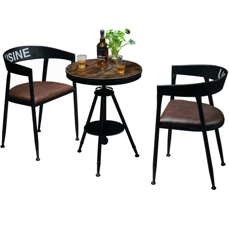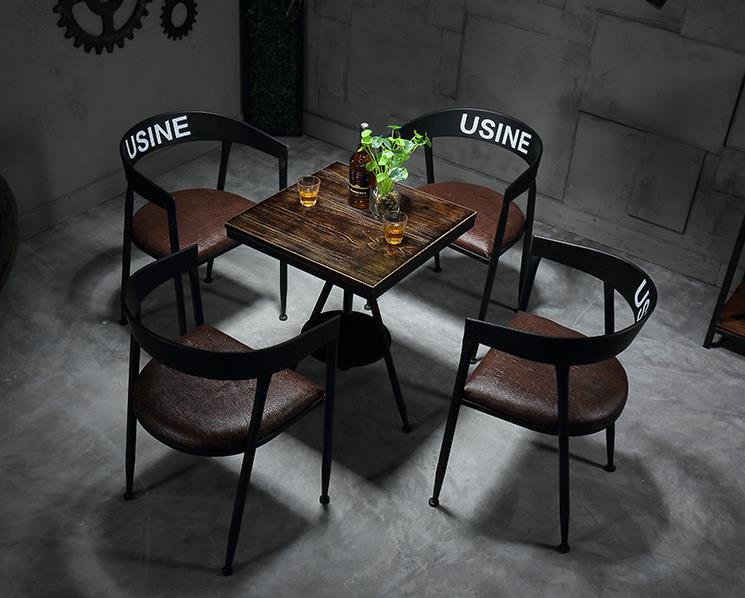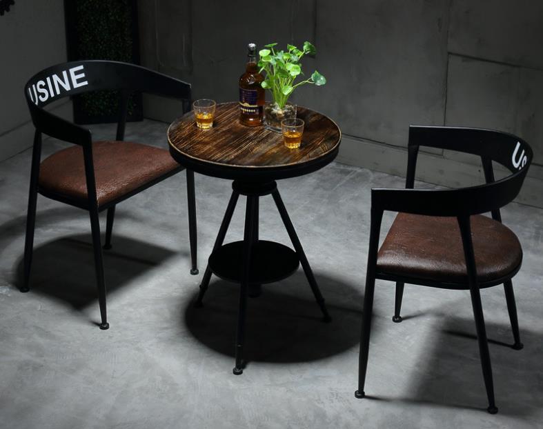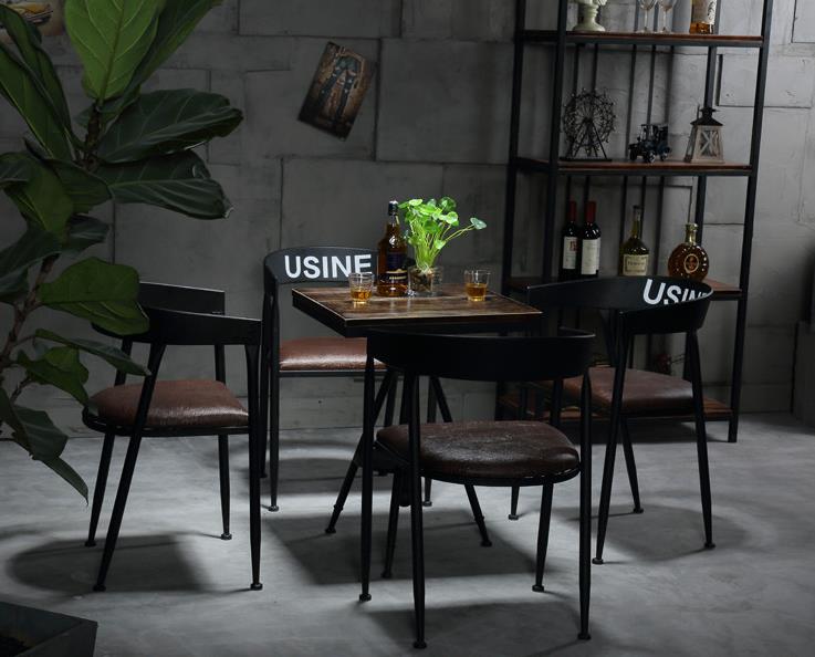 Tables and chairs Vintage minimalist dining table and chair combination Price: $30~$150Size: Support customizationScene: Bars, Cafe, restaurantFeatures: Thickened wrought iron frame, strong load-bearing stabilizationstyle: Industrial